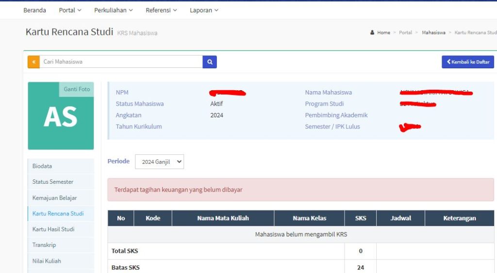 Jadi prinsipnya KRS itu baru bisa diisi setelah bayar UKT, hasil dari KRS disebut dengan Kartu Hasil Studi (KHS). Jadi walaupun faktualnya mengikuti kegiatan belajar di ruang kelas, tapi jika tidak buka KRS maka nilainya tidak dapat dimasukan dalam KHS. Progres kegiatan administrasi akademik tidak ada, alias nol.